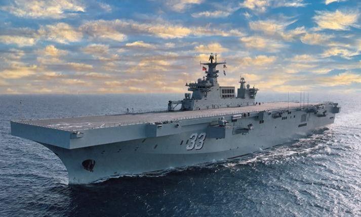 推测其仍将采用传统平甲板构型与纯直升机起降模式,不具备固定翼舰载机弹射能力,仅在吨位与航空作业容量上小幅优化,与美制美利坚级相比存在整整一代的技术代差。